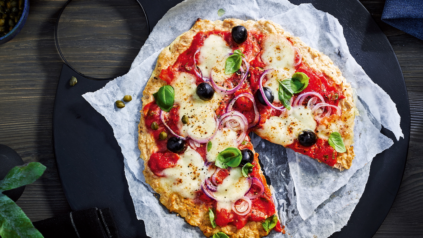 Der Thunfischboden ist eine proteinreiche Alternative zum klassischen Pizzateig. Belegt mit Tomaten, Mozzarella, Basilikum und Oliven, vereint diese Pizza traditionellen italienischen Geschmack mit einem gesundheitsbewussten Ansatz. Ein perfektes Gericht für alle, die Pizza lieben und Neues probieren möchten.